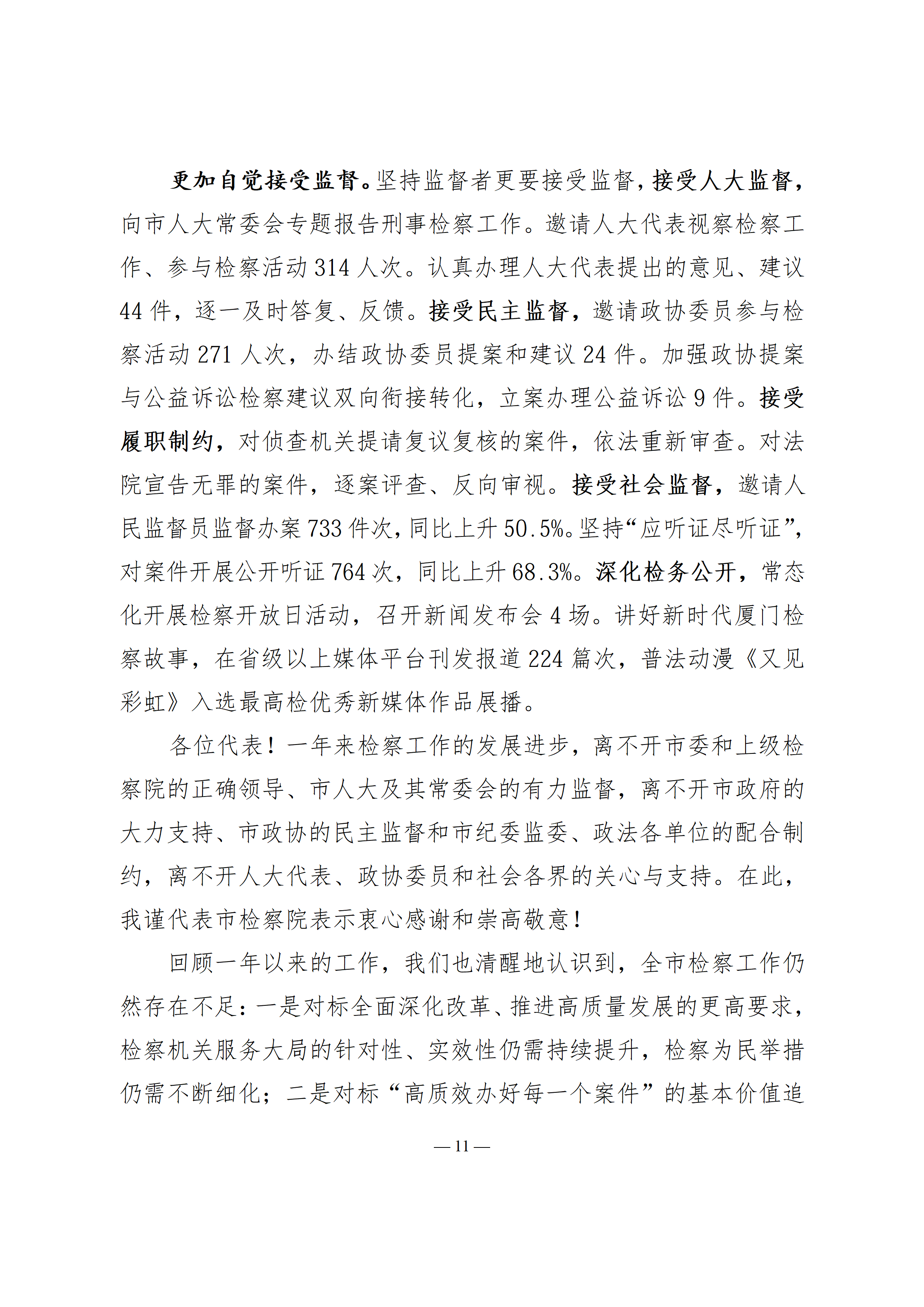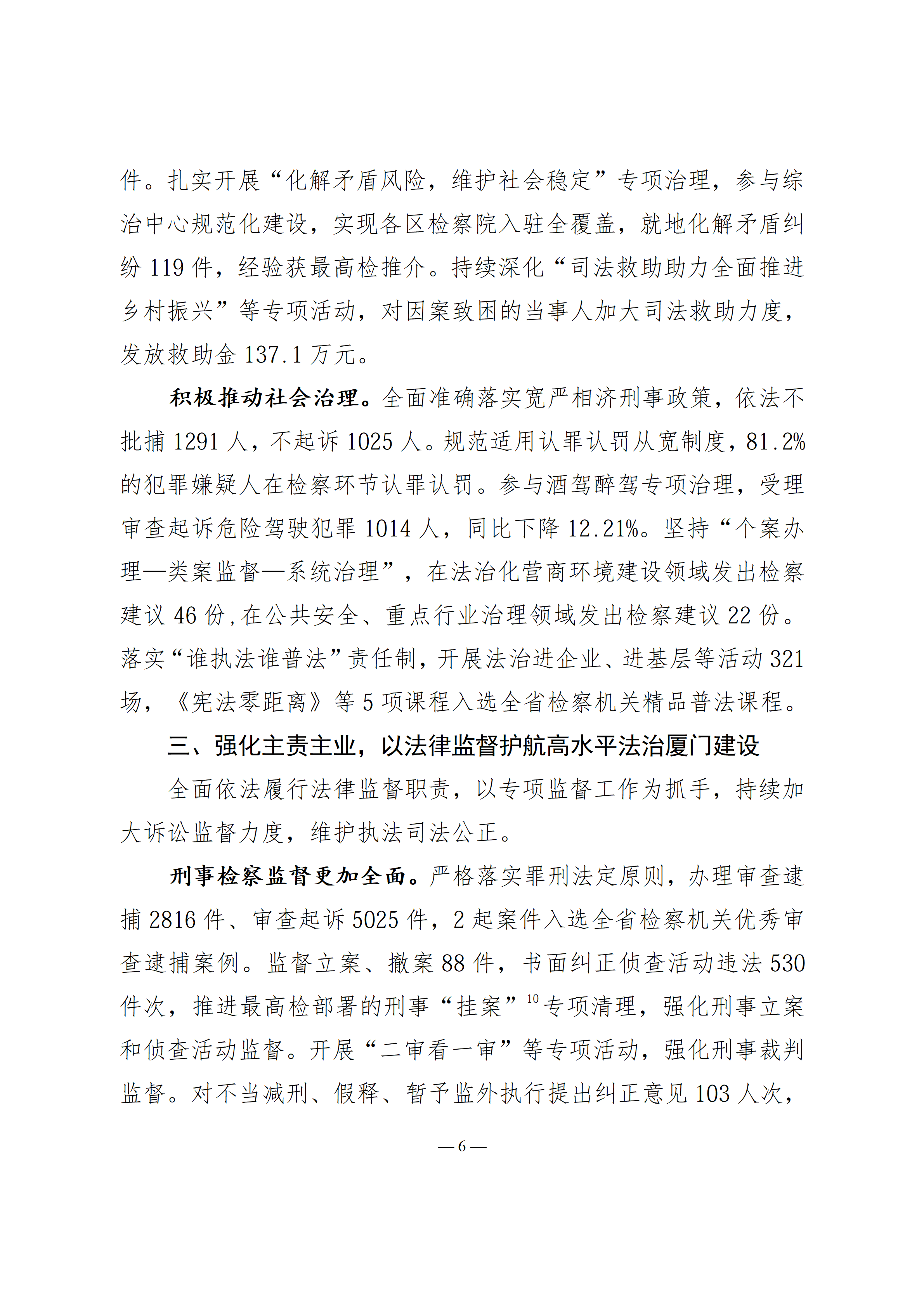2026年厦门市人民检察院工作报(2026年1月24日)