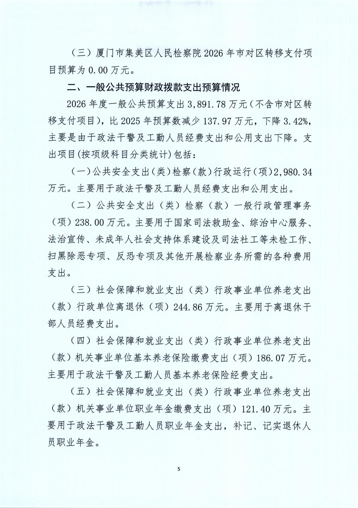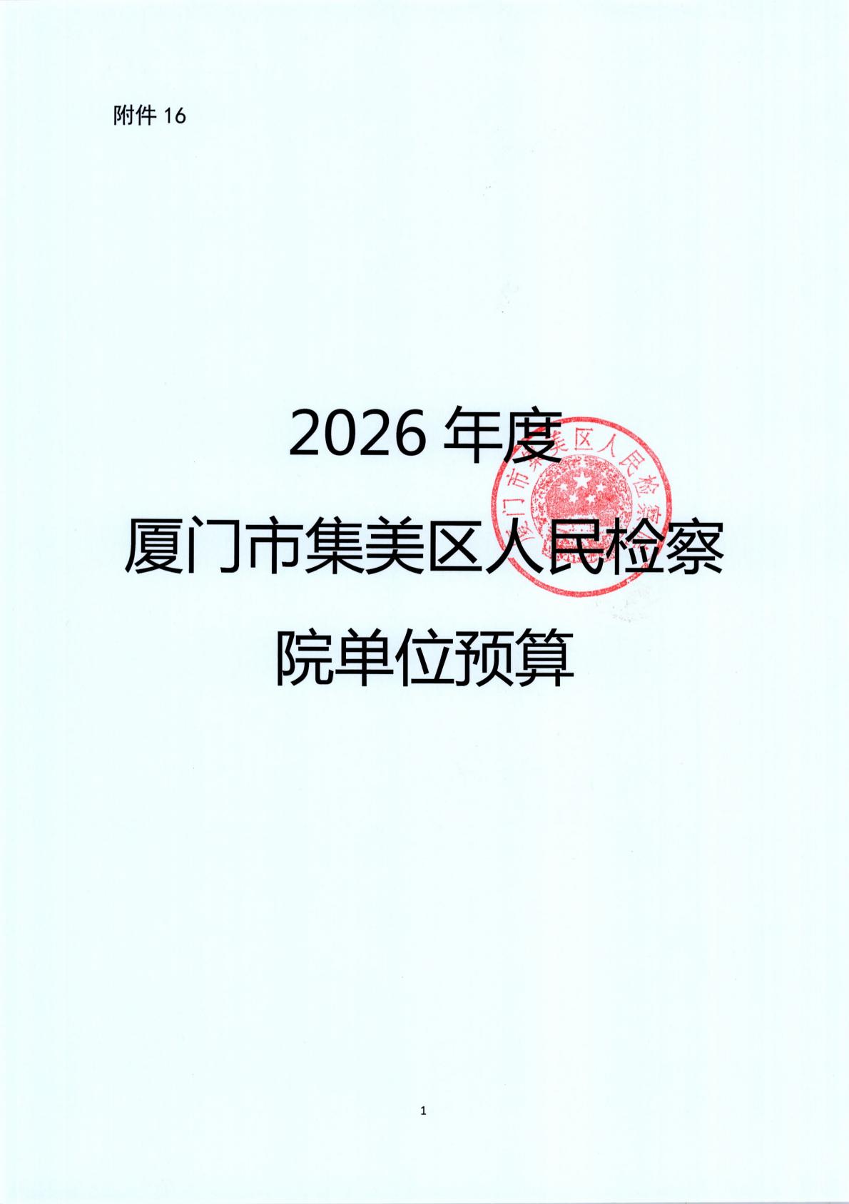 2026年度厦门市集美区人民检察院单位预算公开