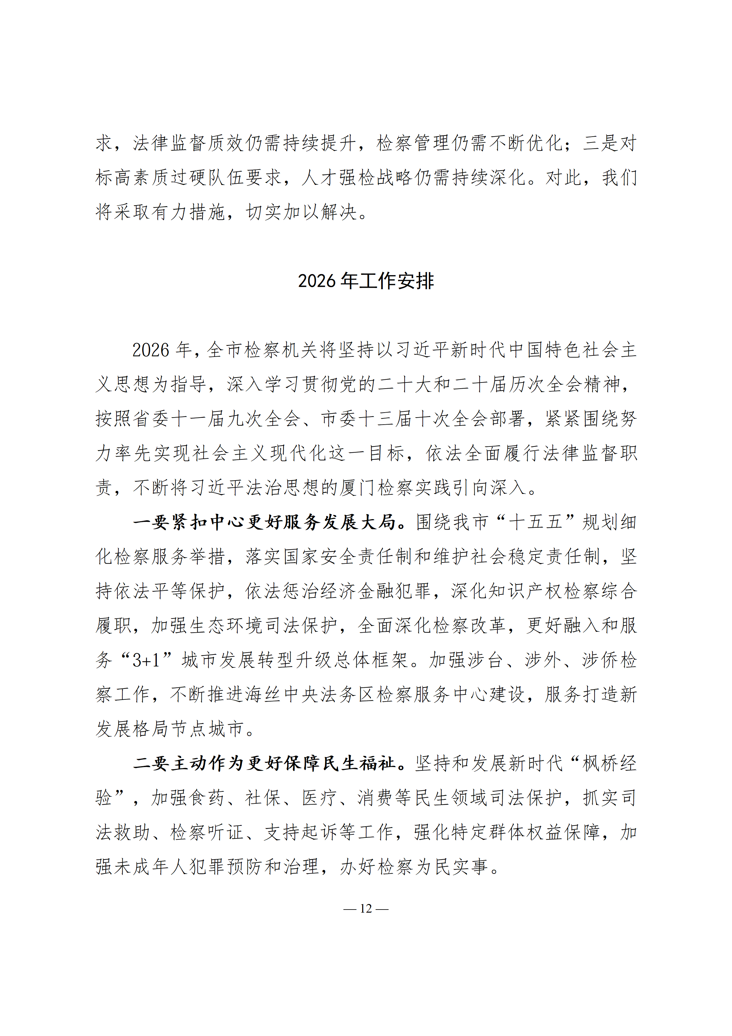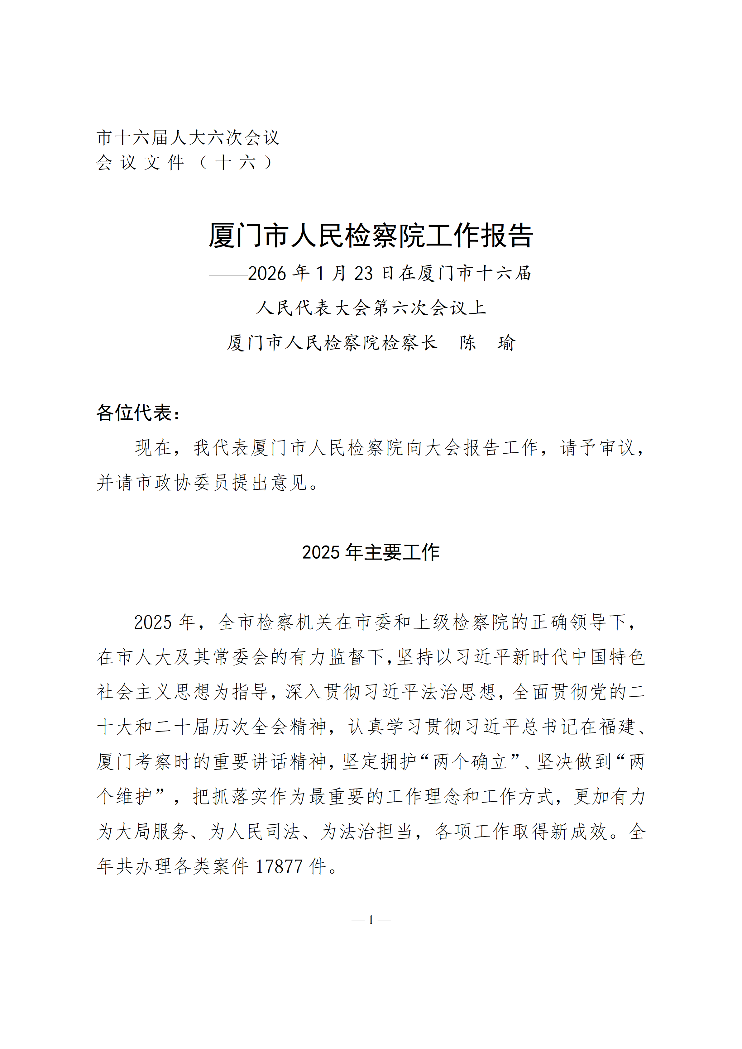 2026年厦门市人民检察院工作报(2026年1月24日)